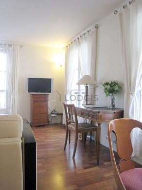 Este apartamento está formado por un salón con parquet en el suelo y ventanas doble acristalamiento, un balcon y una vista a la calle. Este salón tranquilo está amueblado y equipado para que su estancia sea agradable : televisor, sábanas, mesa, mesa de estudio, ropero, estantería, cómoda, armario empotrado, 5 silla(s)1 sofá cama.