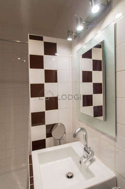 Este apartamento tiene una sala de baño agradable y clara with ventanas. Este baño tiene todo lo necesario para su bienestar diario : toallas, estantería, ducha. El WC está integrado en la sala del baño.