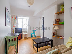 Este apartamento está formado por un salón con parquet en el suelo y ventanas y una vista a la calle. Este salón tranquilo está amueblado y equipado para que su estancia sea agradable : televisor, sábanas, edredones, mesa, mesita, estantería, 3 silla(s), taburete1 sofá cama.
