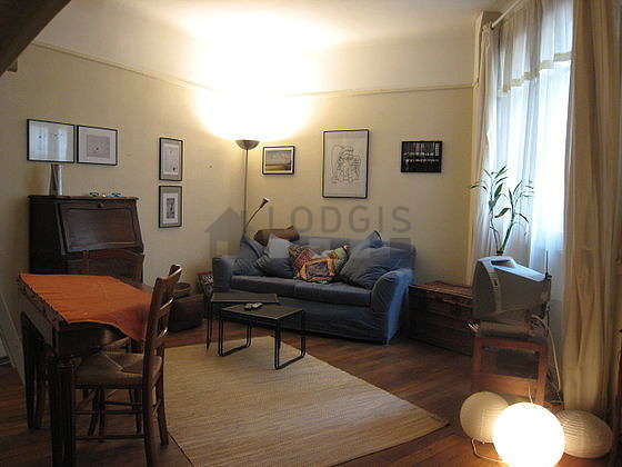 Este apartamento está formado por un salón con parquet en el suelo y ventanas y una vista a al patio. Este salón tranquilo está amueblado y equipado para que su estancia sea agradable : televisor, sábanas, edredones, 2 sillones, mesa, mesita, mesa de estudio, ropero, estantería, armario empotrado, 4 silla(s)1 sofá cama, 1 colchón.