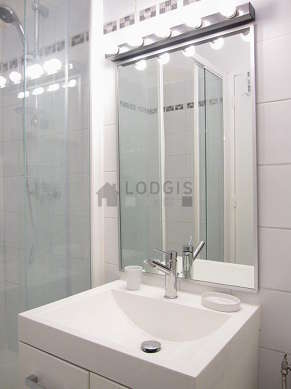 Este apartamento posee una bonito cocina con parquet en el sueloy todo el equipamiento esencial para su vida diaria : placas eléctricas, refrigerador, congelador, horno micro-ondas, tostador, hervidor, armario empotrado, vajilla.