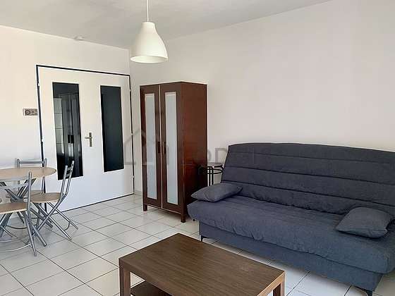 SalónEste apartamento está formado por un salón ventanas doble acristalamiento. Este salón está amueblado y equipado para que su estancia sea agradable : edredones, sofá, mesa, mesita, armario, 1 silla(s)1 sofá cama, 1 cama en altura.