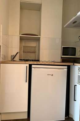 Este apartamento posee una cocinay todo el equipamiento necesario para su vida diaria : placas eléctricas, refrigerador, micro ondas, hervidor, cafetera, estantería, armario empotrado, vajilla.