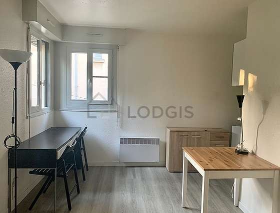 SalónEste apartamento está formado por un salón ventanas. Este salón está amueblado y equipado para que su estancia sea agradable : edredones, sofá, mesa, mesa de estudio, estantería, armario empotrado, vajilla, 1 silla(s)1 sofá cama.