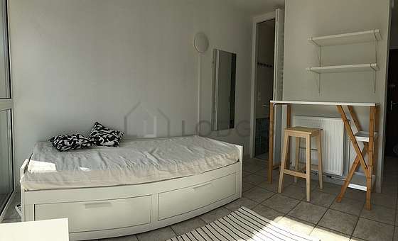 SalónEste apartamento está formado por un salón ventanas. Este salón está amueblado y equipado para que su estancia sea agradable : mesa de estudio, estantería, armario, 1 silla(s), bar1 cama.