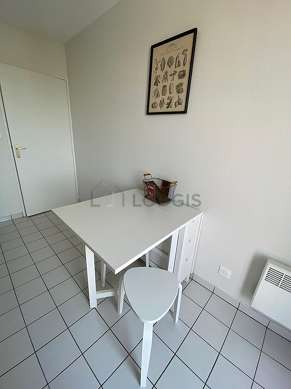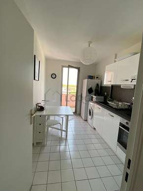 Este apartamento posee una magnífica cocina con azulejo en el sueloy todo el equipamiento necesario para su vida diaria : placas eléctricas, refrigerador, congelador, horno, micro ondas, campana extractora, cafetera, mesa, armario empotrado, vajilla, 1 silla(s), bin.