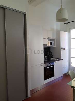 Cet appartement dispose d'une cuisine et tout l'équipement indispensable pour votre quotidien : plaques de cuisson, congélateur, four, micro ondes, cafetière, table à manger, placard, vaisselle, 1 chaise(s).