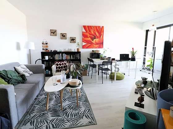 SéjourCet appartement est composé d'un superbe salon des fenêtres. Ce salon très calme est meublé et équipé pour rendre votre séjour agréable : télé, canapé, 1 fauteuil(s), table à manger, etagère, 1 chaise(s), lampadaire sur pied, meuble tv, tableau, table gigogne1 canapé(s) lit(s) de 140cm.