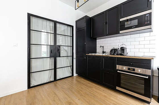Cet appartement dispose d'une cuisine et tout l'équipement nécessaire pour votre quotidien : plaques de cuisson, réfrigerateur, congélateur, four, micro ondes, hotte, grille pain, bouilloire électrique, cafetière, vaisselle.