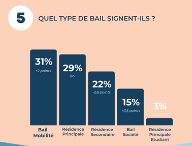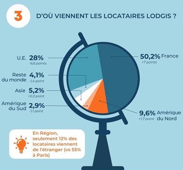Cette hausse se fait surtout au détriment des locataires européens qui ne représentent plus que 28 % des locataires de meublé France (- 6,6 points).