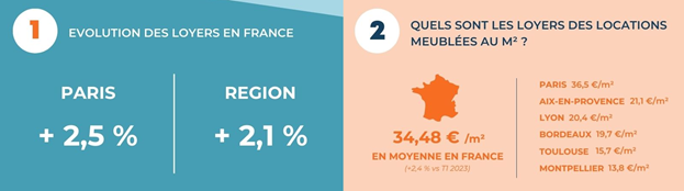 Lodgis observe une hausse des loyers à Paris (+ 2,5 %) par rapport au premier trimestre 2023 et une hausse de 2,1 % en moyenne dans les autres grandes villes de France (Bordeaux, Lyon, Toulouse, Aix-en-Provence, Montpellier).