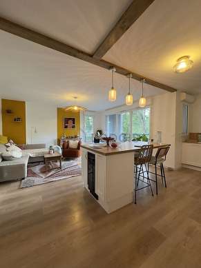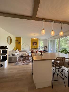 SéjourCet appartement est composé d'un salon avec du parquet au sol et des fenêtres double vitrage. Ce salon est meublé et équipé pour rendre votre séjour agréable : télé, canapé, 1 fauteuil(s), table basse.