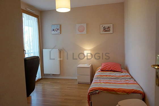 Avec du parquet au sol et des fenêtres double vitrage cette chambre splendide offre l'équipement nécessaire pour vous reposer pendant votre séjour : couettes, 1 fauteuil(s), bureau, etagère, placard, 1 chaise(s), tabouret, tableau1 lit(s) gigogne de 90cm.
