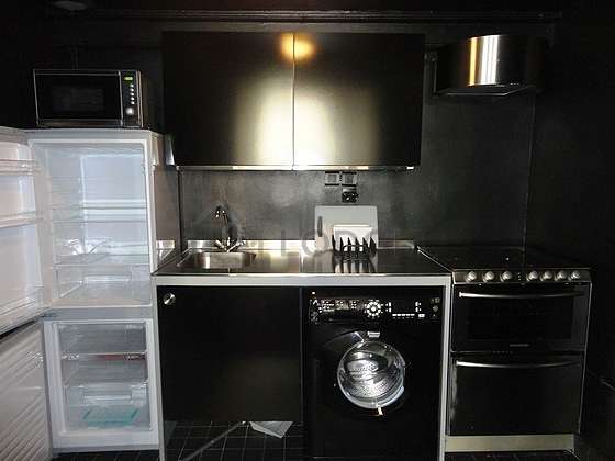 Cet appartement dispose d'une cuisine et tout l'équipement essentiel pour votre quotidien : plaques de cuisson, réfrigerateur, four.