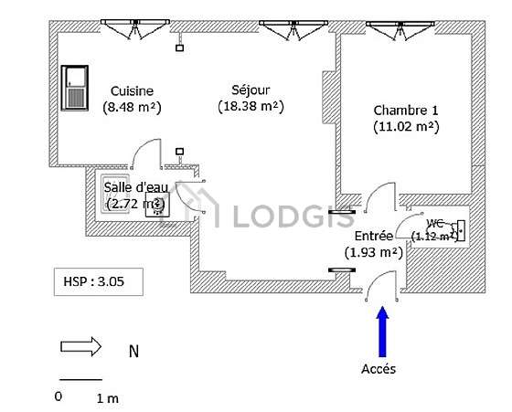 SéjourCet appartement est composé d'un salon des fenêtres. Ce salon est meublé et équipé pour rendre votre séjour agréable : canapé, table à manger, 3 chaise(s).