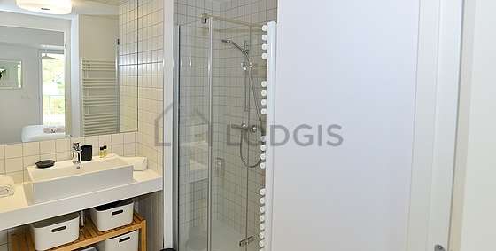 Cet appartement est équipé d'une salle de bain. Cette salle d'eau bénéficie du nécessaire pour votre bien-être au quotidien : douche séparée, lavabo, radiateur sèche-serviettes. Les toilettes sont intégrées dans la salle de bain.