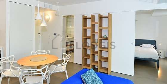 Cet appartement est composé d'un salon des fenêtres double vitrage. Ce salon est meublé et équipé pour rendre votre séjour agréable : télé, canapé, table à manger, table basse, etagère, 1 chaise(s).