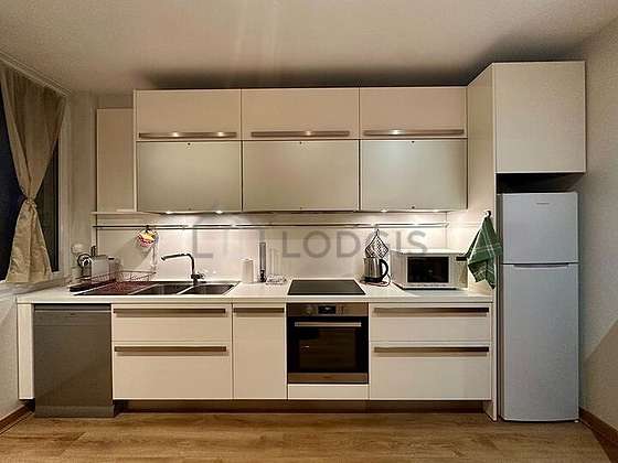 Cet appartement dispose d'une cuisine et tout l'équipement nécessaire pour votre quotidien : plaques de cuisson, réfrigerateur, congélateur, four, micro ondes, hotte, grille pain, bouilloire électrique, cafetière, placard, vaisselle, casserole, plan de travail.