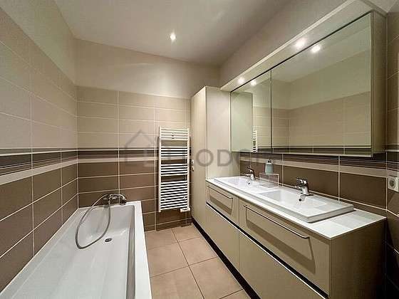 Cet appartement est équipé d'une salle de bain. Cette salle d'eau bénéficie du nécessaire pour votre bien-être au quotidien : baignoire, radiateur sèche-serviettes. Les toilettes sont séparées de la salle de bain et situées dans une pièce indépendante.