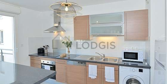 Cet appartement dispose d'une cuisine et tout l'équipement indispensable pour votre quotidien : plaques de cuisson, réfrigerateur, congélateur, four, micro ondes, hotte, cafetière, placard, vaisselle, 1 chaise(s), bar.