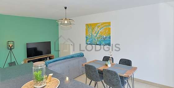 Cet appartement est composé d'un salon des fenêtres double vitrage. Ce salon est meublé et équipé pour rendre votre séjour agréable : télé, canapé, table à manger, table basse, 1 chaise(s).
