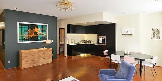 SéjourCet appartement est composé d'un salon des fenêtres double vitrage. Ce salon est meublé et équipé pour rendre votre séjour agréable : 1 fauteuil(s), table à manger, table basse, buffet, 1 chaise(s).