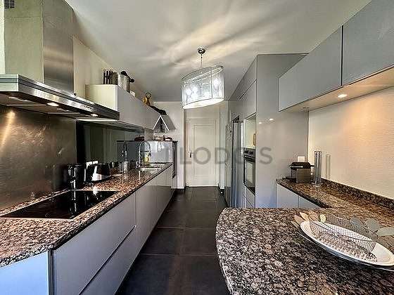 Cet appartement dispose d'une cuisine et tout l'équipement essentiel pour votre quotidien : plaques de cuisson, réfrigerateur, four, micro ondes, hotte, bouilloire électrique, cafetière, placard, vaisselle.