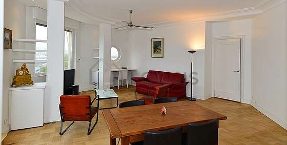 Cet appartement est composé d'un salon des fenêtres. Ce salon est meublé et équipé pour rendre votre séjour agréable : télé, canapé, table à manger, 1 chaise(s).