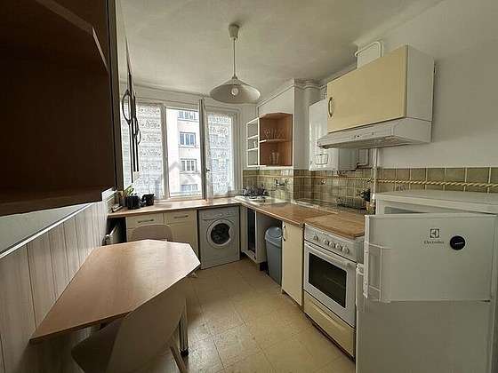 Cet appartement dispose d'une cuisine et tout l'équipement indispensable pour votre quotidien : réfrigerateur, four, hotte, grille pain, bouilloire électrique, cafetière, table à manger, lustre.