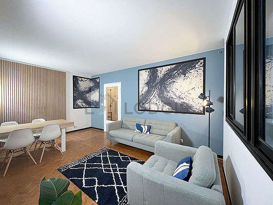 SéjourCet appartement est composé d'un salon des fenêtres. Ce salon est meublé et équipé pour rendre votre séjour agréable : télé, canapé, 1 fauteuil(s), table à manger, 1 chaise(s), lampe.