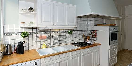 Cet appartement dispose d'une cuisine avec du carrelage au sol et tout l'équipement indispensable pour votre quotidien : plaques de cuisson, réfrigerateur, congélateur, four, micro ondes, hotte, grille pain, bouilloire électrique, cafetière, table à manger, etagère, placard, vaisselle, 1 chaise(s), assiettes creuses, assiettes plates, bol, casserole, couteaux de cuisine, couteaux à pain, couvercle, couverts, cuillère en bois, dessous de plat, econome, egouttoir, essoreuse à salade, fouet, louche, marmitte, moule, mugs, ouvre-boite, passoire, planche à découper, plan de travail, plat à four, plat de service, poêle, poubelle, râpe, saladier, set de table, tableau, tasses à café, tasses à thé, théière, tire-bouchon, verre à champagne, verre à eau, verre à vin.