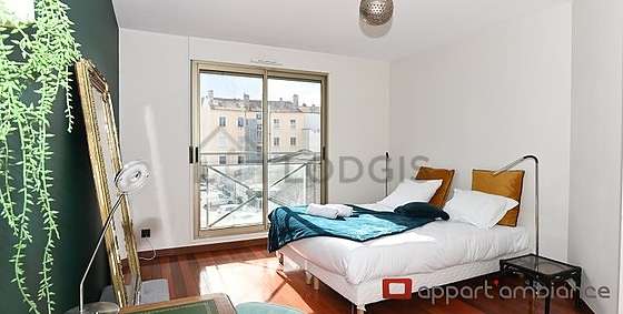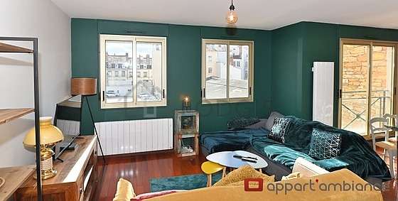 SéjourCet appartement est composé d'un salon avec du parquet au sol vue sur cour. Ce salon est meublé et équipé pour rendre votre séjour agréable : télé, canapé, table basse, etagère, meuble tv, tableau, tapis1 canapé(s) lit(s) de 140cm.