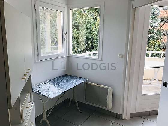 Cet appartement est composé d'un superbe salon avec du carrelage au sol vue sur jardin. Ce salon très calme est meublé et équipé pour rendre votre séjour agréable : couettes, table à manger, placard, 1 chaise(s)1 lit(s) de 160cm.