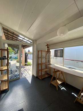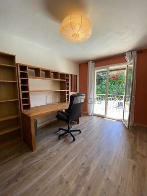 Doté d'un superbe bureau, cette maison individuelle offre un espace annexe équipé de bureau, etagère, placard pour pouvoir travailler efficacement ou encore se divertir en toute tranquillité.