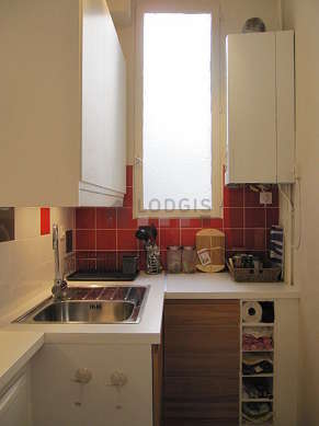 Cet appartement dispose d'une belle cuisine avec du carrelage au sol et tout l'équipement indispensable pour votre quotidien : plaques de cuisson, réfrigerateur, four, micro ondes, freezer, hotte, grille pain, bouilloire électrique, cafetière, placard, vaisselle.