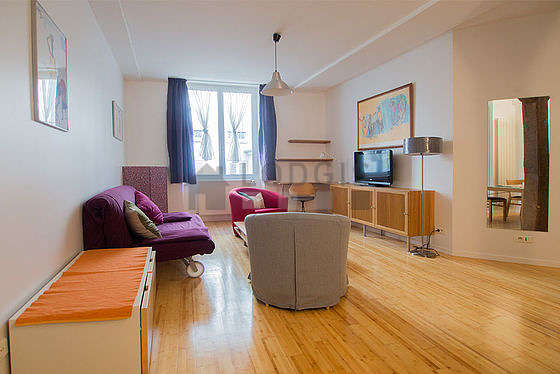 SéjourCet appartement est composé d'un séduisant salon avec du parquet au sol et des fenêtres et vue sur cour. Ce salon très calme est meublé et équipé pour rendre votre séjour agréable : télé, 2 fauteuil(s), table à manger, table basse, placard, 6 chaise(s)1 canapé(s) lit(s) de 160cm.