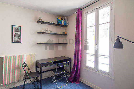 Cet appartement est composé d'un salon avec du linoleum au sol et des fenêtres et vue sur cour. Ce salon très calme est meublé et équipé pour rendre votre séjour agréable : bureau, penderie, etagère, placard, 2 chaise(s)1 canapé(s) lit(s) de 120cm.