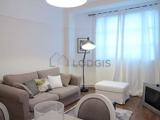 Cet appartement est composé d'un beau salon avec du parquet au sol et des fenêtres double vitrage et vue sur rue. Ce salon est meublé et équipé pour rendre votre séjour agréable : télé, canapé, 1 fauteuil(s), table à manger, 4 chaise(s).