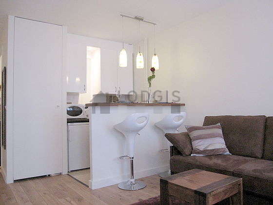 Cet appartement est composé d'un séduisant salon avec du parquet au sol et des fenêtres et vue sur rue. Ce salon calme est meublé et équipé pour rendre votre séjour agréable : télé, draps, couettes, table basse1 canapé(s) lit(s) de 140cm.