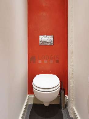 Cet appartement est équipé d'une salle de bain agréable et claire. Cette salle d'eau bénéficie du nécessaire pour votre bien-être au quotidien : serviettes de bain, douche séparée, sèche cheveux, radiateur sèche-serviettes. Les toilettes sont séparées de la salle de bain et situées dans une pièce indépendante.