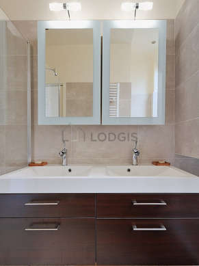 Cet appartement est équipé d'une salle de bain magnifique et très claire avec des fenêtres double vitrage. Cette salle d'eau bénéficie du nécessaire pour votre bien-être au quotidien : serviettes de bain, placard, douche séparée, baignoire balnéothérapie, sèche cheveux, radiateur sèche-serviettes. Les toilettes sont séparées de la salle de bain et situées dans une pièce indépendante.
