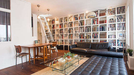 Cet appartement est composé d'un salon avec du parquet au sol et des fenêtres et vue sur rue. Ce salon est meublé et équipé pour rendre votre séjour agréable : télé, 2 fauteuil(s), table basse, bureau, penderie, bibliothèque, placard1 canapé(s) lit(s) de 140cm.
