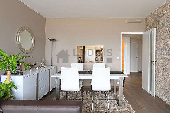 Cet appartement est composé d'un magnifique salon avec du parquet au sol et des fenêtres. Ce salon très calme est meublé et équipé pour rendre votre séjour agréable : home cinéma, télé, table à manger, table basse, commode, 4 chaise(s), tabouret1 canapé(s) lit(s) de 160cm.