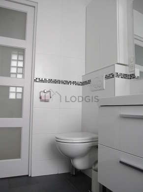 Cet appartement est équipé d'une salle de bain magnifique et claire avec des fenêtres. Cette salle d'eau bénéficie du nécessaire pour votre bien-être au quotidien : serviettes de bain, placard, douche séparée, sèche cheveux, radiateur sèche-serviettes. Les toilettes sont intégrées dans la salle de bain.