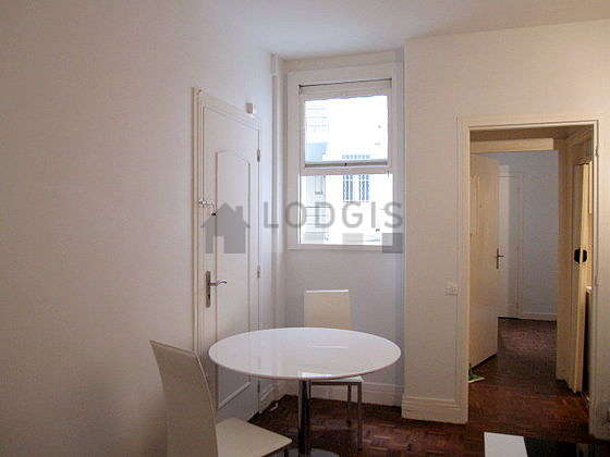 Cet appartement est composé d'un salon avec du parquet au sol et des fenêtres double vitrage et vue sur cour. Ce salon est meublé et équipé pour rendre votre séjour agréable : canapé, table à manger, table basse, penderie, placard, 2 chaise(s).