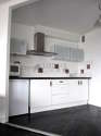 Cet appartement dispose d'une belle cuisine sur le séjour avec du linoleum au sol et tout l'équipement essentiel pour votre quotidien : plaques de cuisson, réfrigerateur, micro ondes, freezer, hotte, placard.
