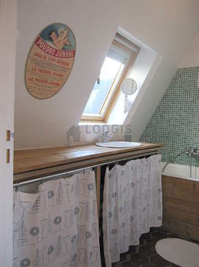 Cet appartement est équipé d'une salle de bain agréable et claire avec des fenêtres. Cette salle d'eau bénéficie du nécessaire pour votre bien-être au quotidien : serviettes de bain, baignoire, radiateur sèche-serviettes. Les toilettes sont séparées de la salle de bain et situées dans une pièce indépendante.