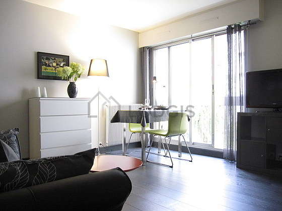 Cet appartement est composé d'un plaisant salon avec du parquet au sol et des fenêtres et vue sur jardin. Ce salon très calme est meublé et équipé pour rendre votre séjour agréable : télé, draps, couettes, canapé, table à manger, table basse, penderie, etagère, commode, placard, 2 chaise(s)1 lit(s) armoire de 140cm.