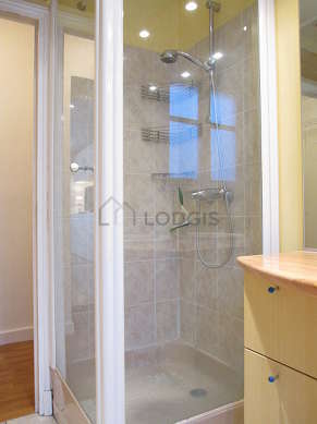 Cet appartement est équipé d'une salle de bain agréable et claire avec des fenêtres double vitrage. Cette salle d'eau bénéficie du nécessaire pour votre bien-être au quotidien : serviettes de bain, placard, douche séparée, radiateur sèche-serviettes. Les toilettes sont séparées de la salle de bain et situées dans une pièce indépendante.