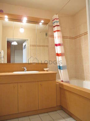 Cet appartement est équipé d'une salle de bain agréable et claire. Cette salle d'eau bénéficie du nécessaire pour votre bien-être au quotidien : serviettes de bain, placard, baignoire, radiateur sèche-serviettes. Les toilettes sont séparées de la salle de bain et situées dans une pièce indépendante.